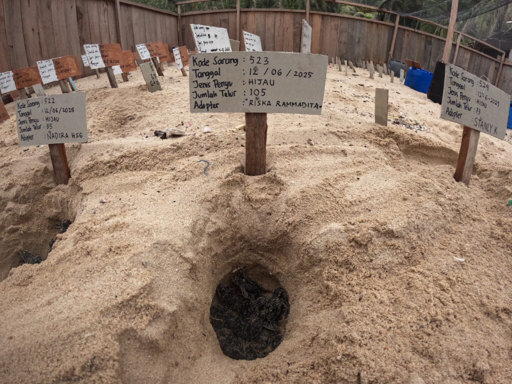 The Anambas Islands still grapples with the illegal trade of turtle eggs. We partner up with a community-based conservation group called Penyu Jemaja Lestari whose work focuses on rescuing turtle eggs and protecting turtles in Teluk Dalam, Sunggak of West Jemaja. The main activities of the Turtle Conservation initiative are regular monitoring, researching and raising awareness. To carry out these activities, we chose several people from the community who were former illegal egg traders. We trained, educated and provided them with an alternative source of income and turned them into rangers who are protecting the turtle populations in the area.